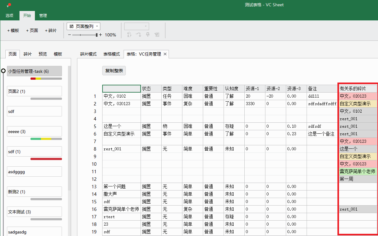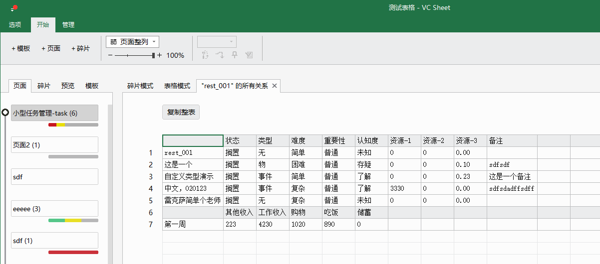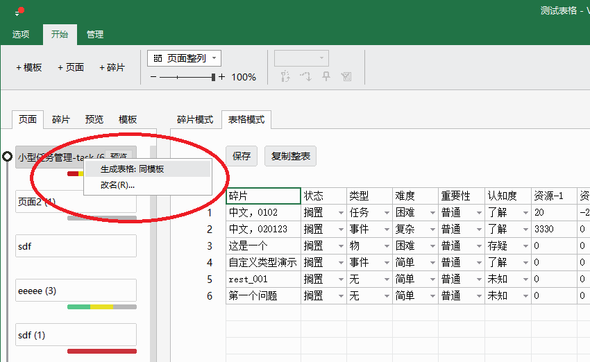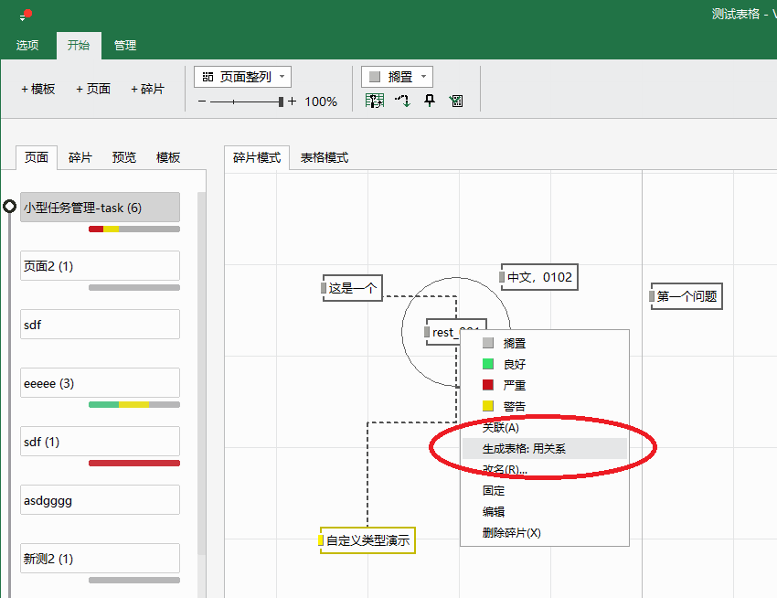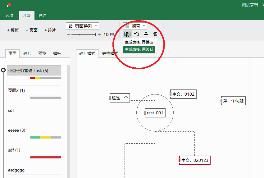 2. 以某个碎片为起始,碎片关系为链路,自动生成表格,