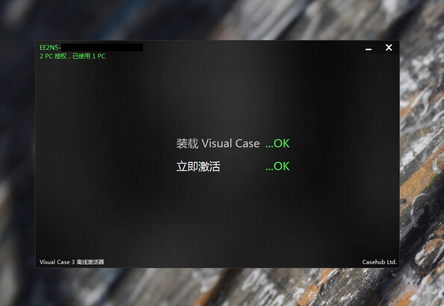 「离线激活器」可以在无互联网(Internet)环境的计算机中激活 Visual Case,使用方法简便如下: