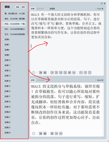 双层操作区的设计,意味着你可以在一个界面上集中处理所有的写作任务,从而极大地提高了工作效率。